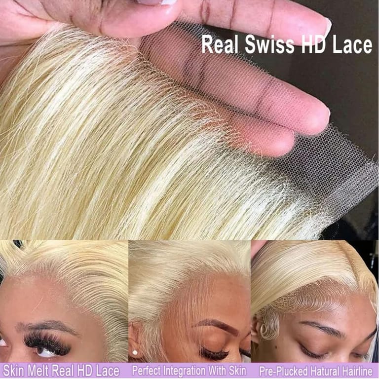 100% Natural Blonde #613 Color Straight Body wave Human Hair Transparent HD Swiss 13x4 13x6 Lace Frontal