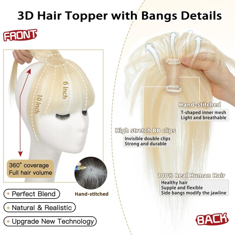 Discover effortless style transformation with our premium blonde 100% Natural Human Hair Fringe Fringe clip-in bangs hairpiece. Expertly crafted with ultra-soft, high-quality fibers and a true-to-life blonde shade, this hairpiece blends flawlessly with your natural hair for a stunning, instant new look. Perfect for trying out bangs without commitment, its lightweight and secure clip-in design offers comfort and ease, making your hair makeover quick and hassle-free. Ideal for all face shapes and hair types, this versatile accessory adds dimension and charm in seconds. Available in a natural blonde color and a universal fit length to complement most hairstyles.