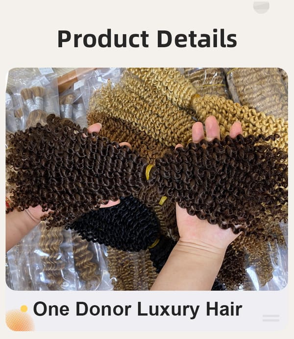 Experience the beauty of fuller, bouncier hair with our premium Curly Hair Extensions Bundle. Each set features high-quality, salon-grade extensions designed to add instant volume and natural texture to your look. Choose from a stunning spectrum of shades, including natural black, rich browns, highlighted blends, and radiant light blonde, ensuring the perfect match for every style and skin tone. Our extensions are expertly crafted for versatile use—perfect for braiding, weaving, or effortlessly elevating your everyday hairstyle. Available in multiple lengths and weights, every bundle arrives beautifully packaged, tangle-free, and ready to transform your hair into a show-stopping statement.