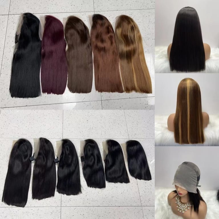 Natural hair wigs in various lengths and colors